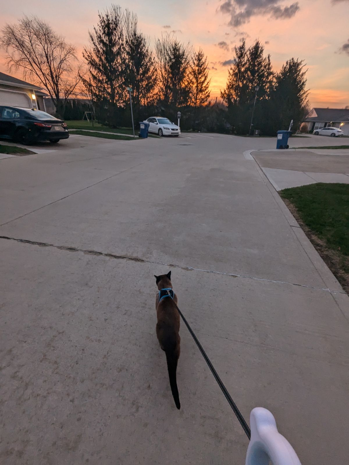 This leash passed. The fit is secure without being restrictive. I can crouch, investigate, and conduct duck surveillance without any interference. I can also sit in the grass and look at sunrises for extended periods. The leash accommodates all of this without complaint. 🌅