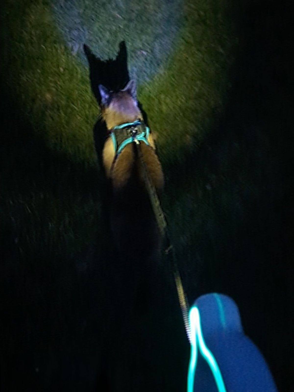 This is the feature that separates the rainbow disco leash from all other leashes. The lights cycle through colors – blue, red, pink, green – continuously, illuminating the grass and pavement around me as I walk. It also includes a flashlight that projects a ring of color around me.