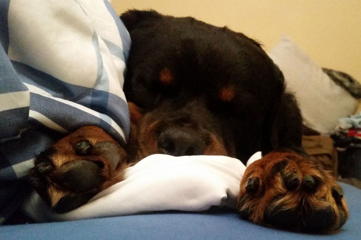 She started sleeping in a little round bed that appeared to keep her mostly contained β and busy making it for several minutes before every dog nap, as seen in my surveillance footage below:
