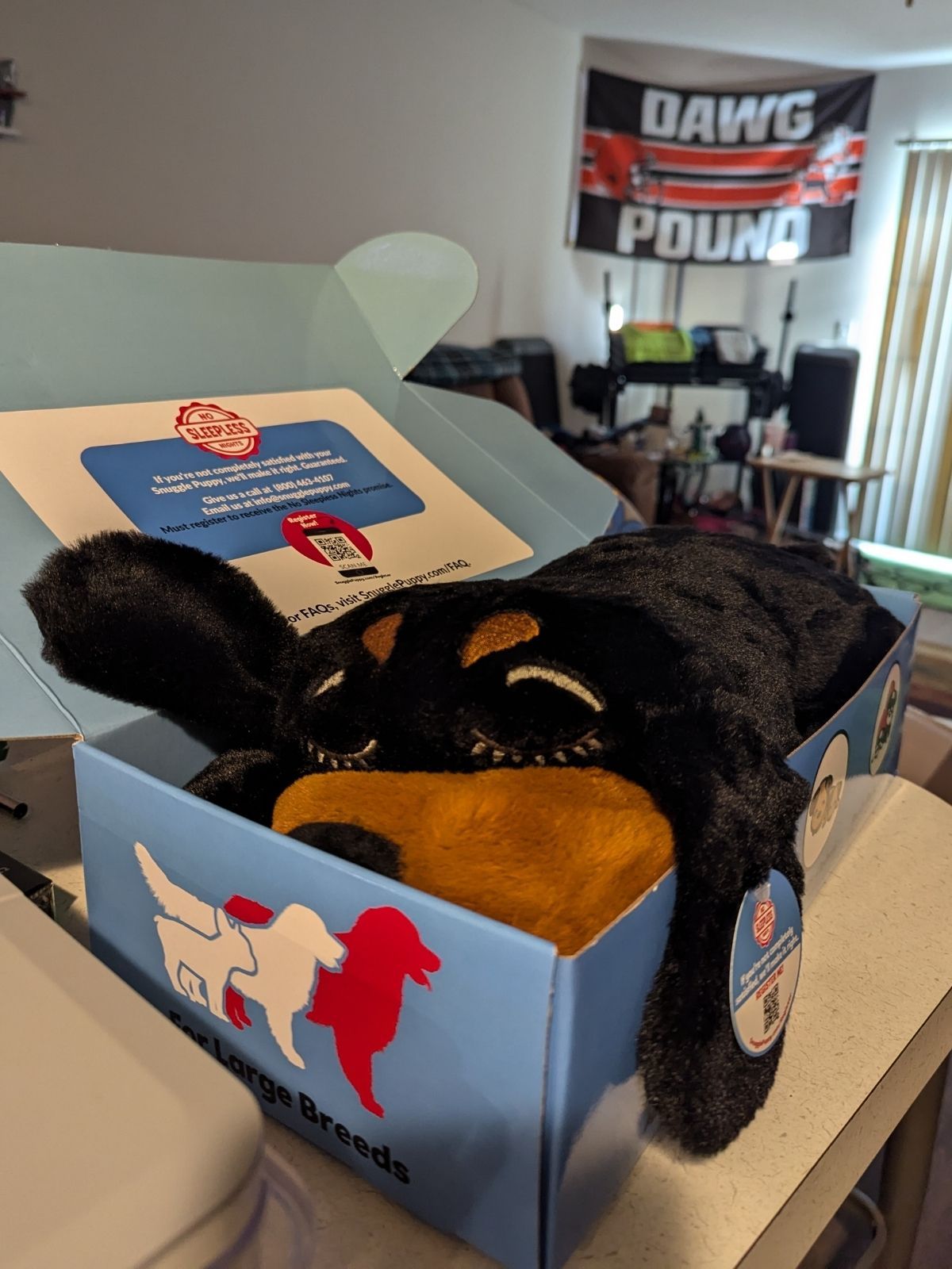 My humans explained that the stuffed dog contains a heartbeat device β a small battery-operated unit that mimics a living heartbeat. It also has a heat pack. It is, in practical terms, a warm, pulsing stuffed Rottweiler.